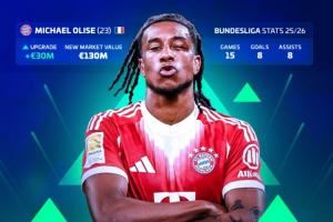 暴涨3000万!奥利塞身价涨至1.3亿欧,穆西亚拉1.4亿不变