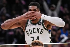 梦幻联动!字母哥在战胜尼克斯的比赛中模仿约克雷斯面具庆祝